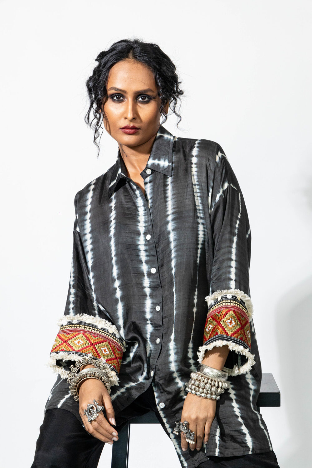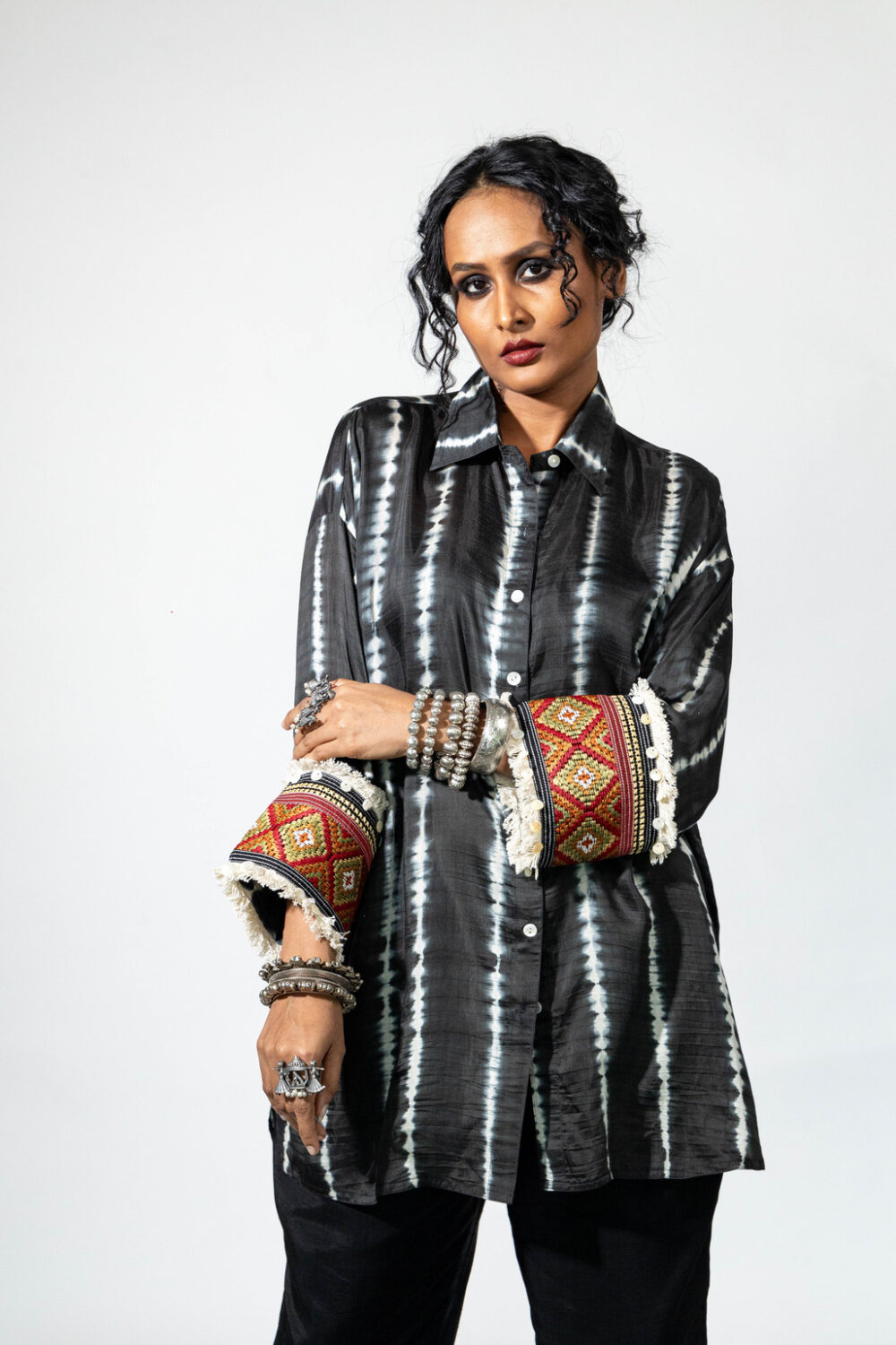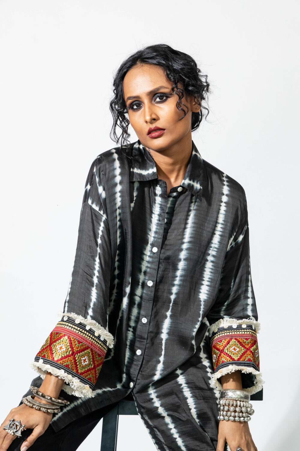 Banjara is a collection inspired from the tribes of rajasthan. The use of mirror tassels and crostich embroidery in bright contrast colours is an inherant part of the collection. The fabrics are natural and easy to breathe in. The classic cuff shirt is always in style, so you cant go wrong with this one