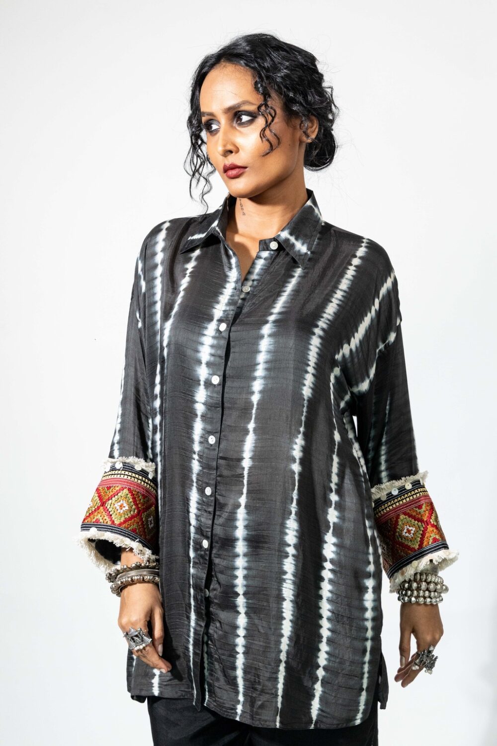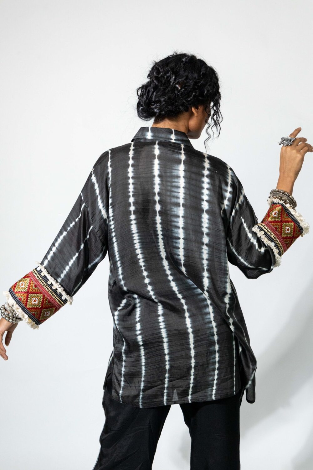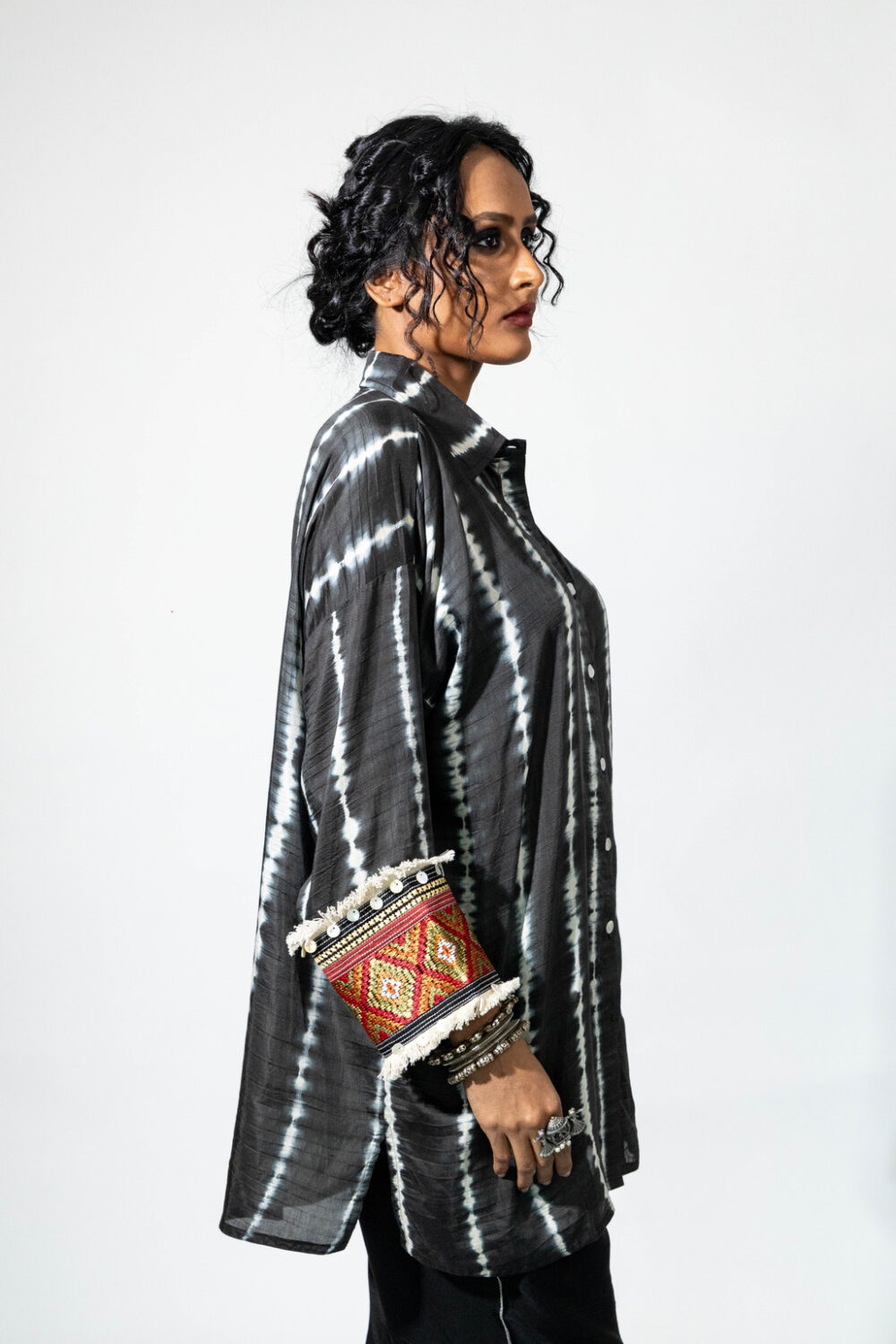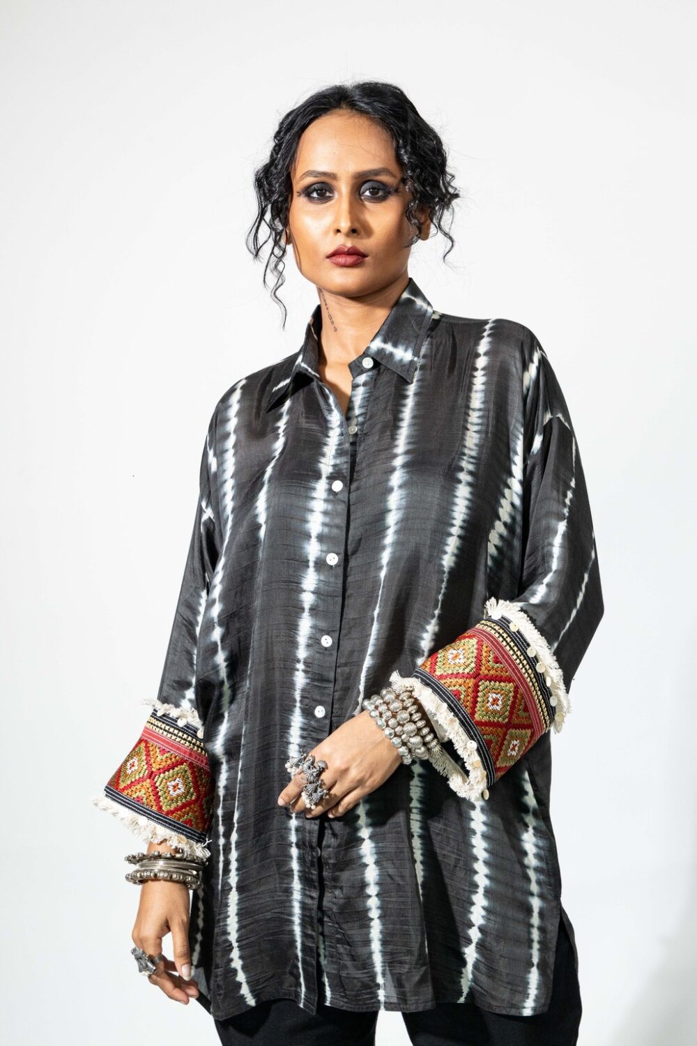 Banjara is a collection inspired from the tribes of rajasthan. The use of mirror tassels and crostich embroidery in bright contrast colours is an inherant part of the collection. The fabrics are natural and easy to breathe in. The classic cuff shirt is always in style, so you cant go wrong with this one