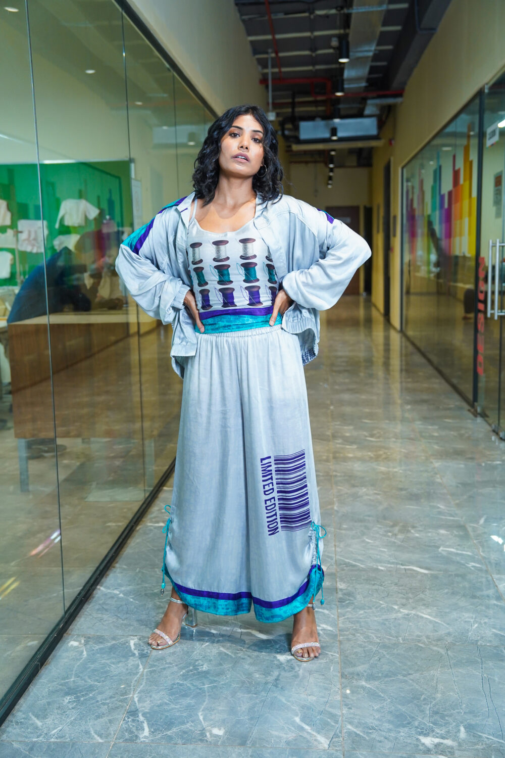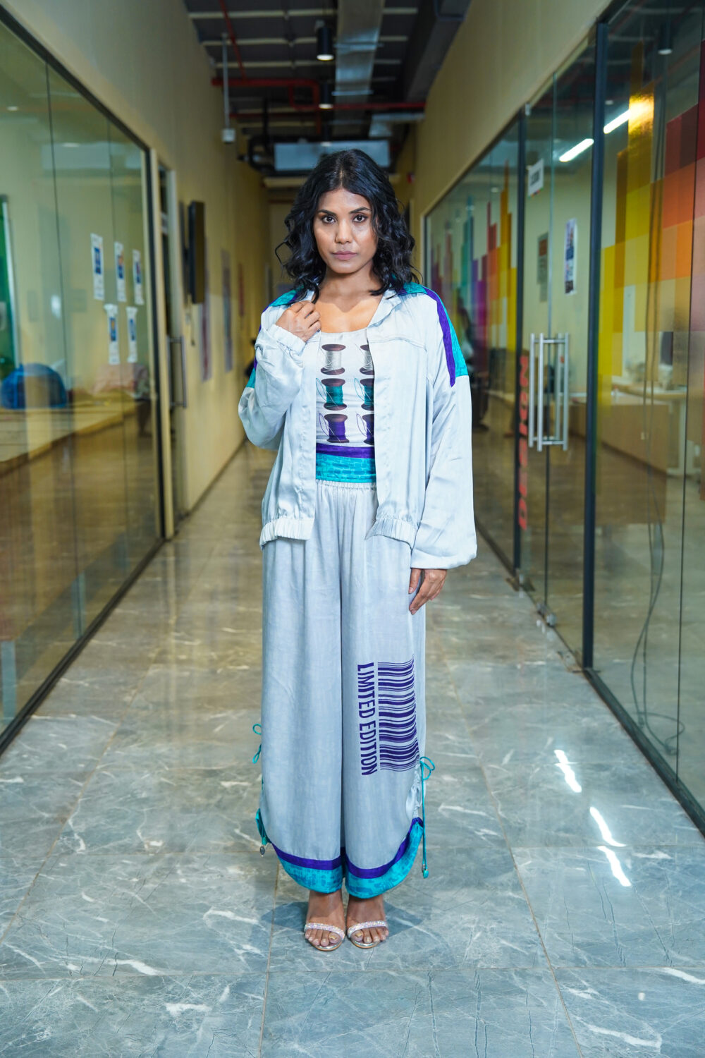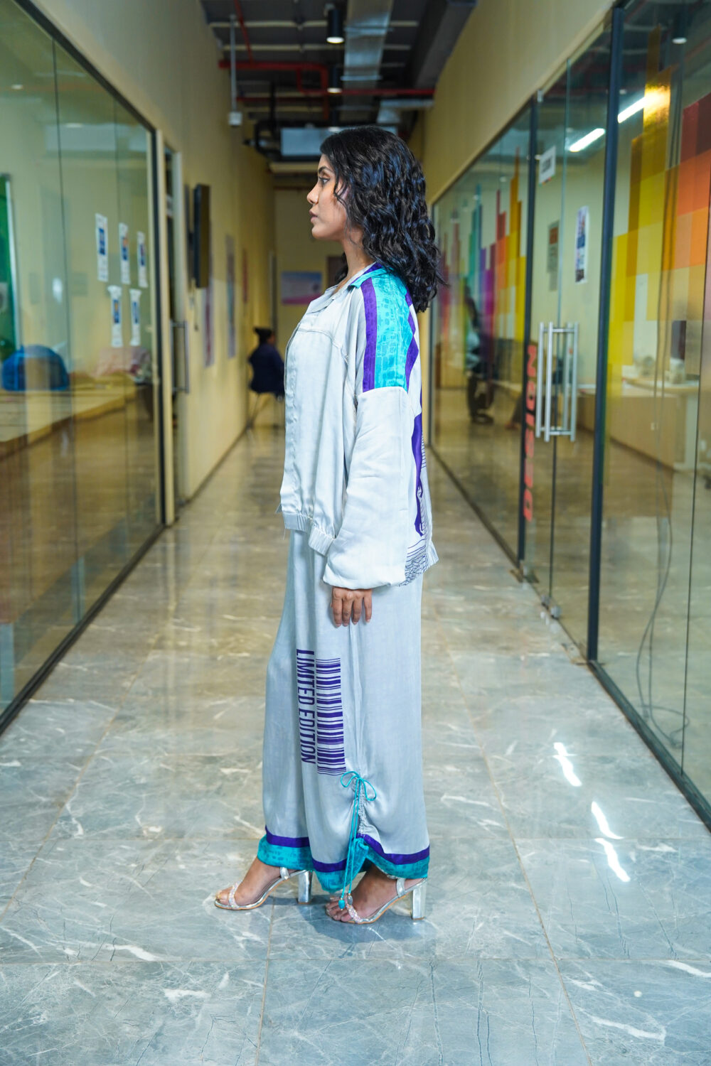 Travel in style with our Bomber Jacket and Drawstring pants set. Make this a brunch outfit or an airport look. The Jacket has a elasticated hem and zipper closer for comfort. The inner is trech with a elasticated back to give you a perfect fit while the pants are easy, wide legged with drawstrings to add oomph. Made from soft luxurious cotton satin to keep you comfortable yet super stylish.