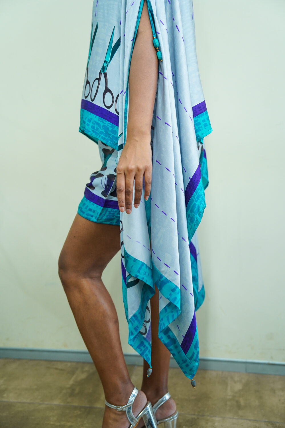 Sexy, Elegant, Statement !!! This out fit is all that and more.. A set of three pcs comprising a pair of sexy shorts , a stretch inner and a statement drop throw on cape wear this ensemble for an occasion and definitely make a statement. Made from soft luxurious cotton satin to keep you comfortable yet super stylish.