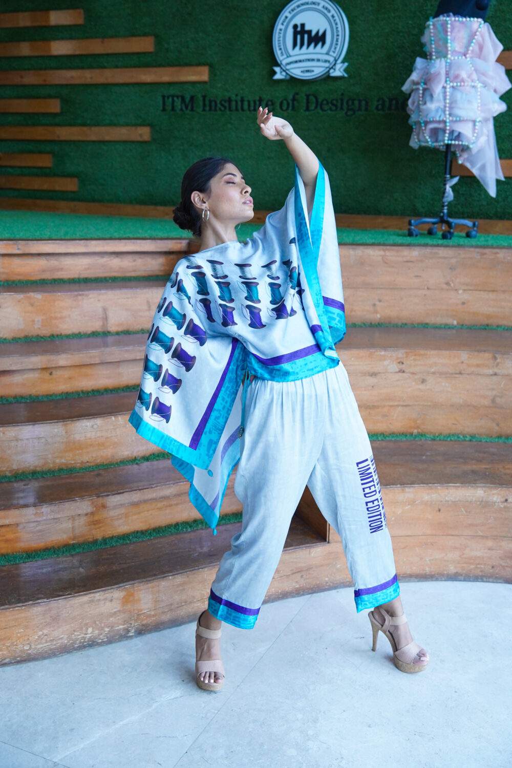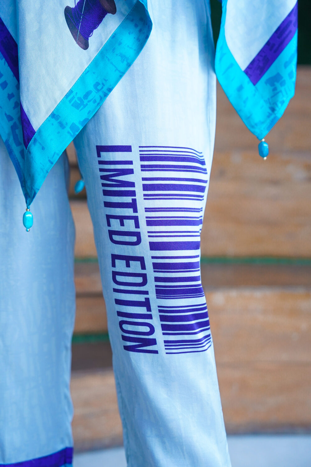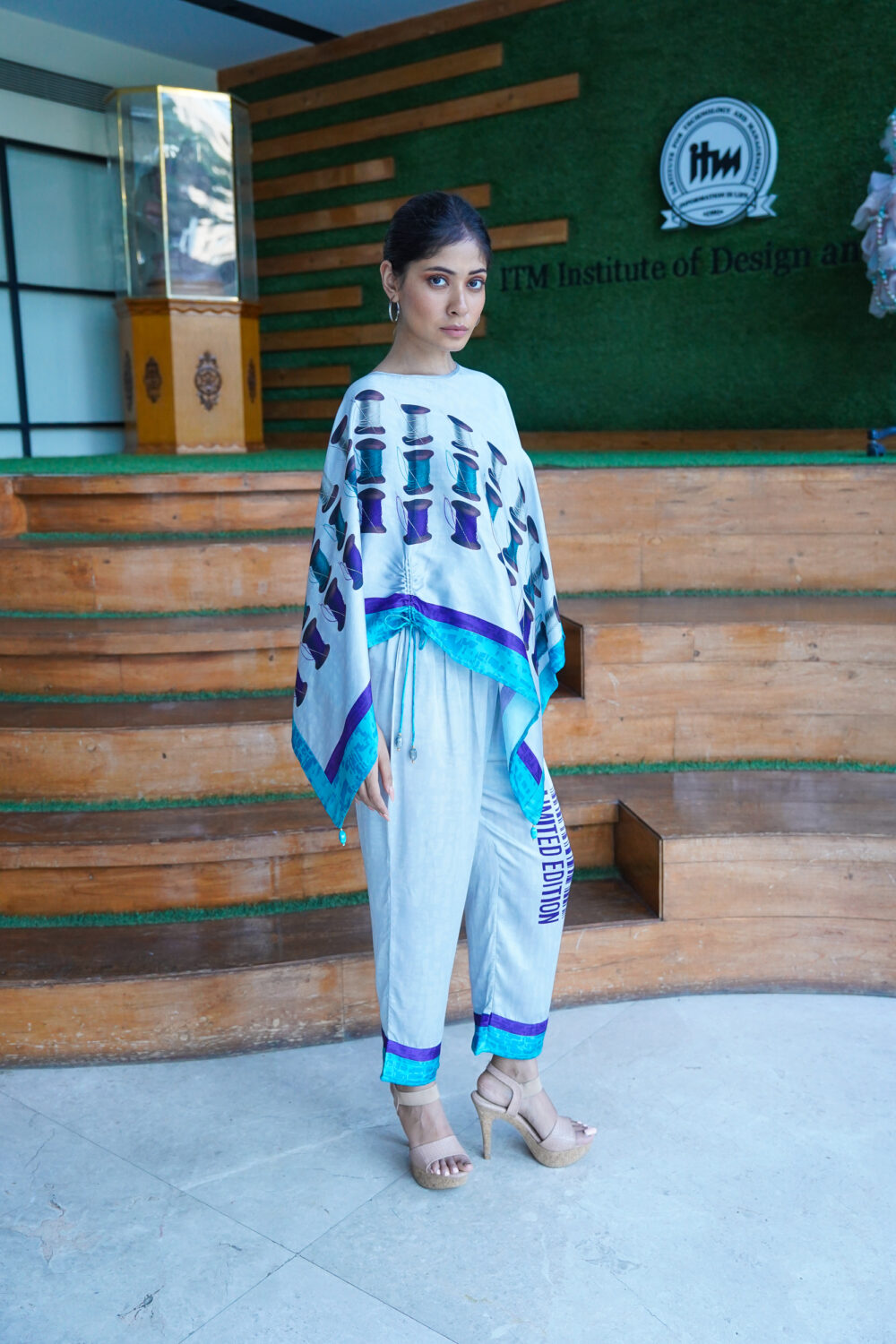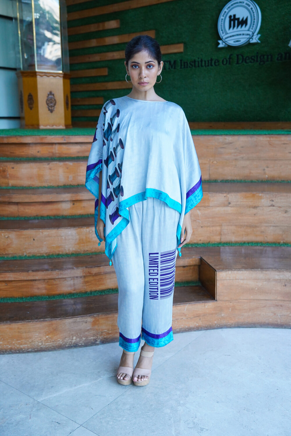 A Three pc set of a cape , inner and pants, this outfits sure to make you feel so comfortable yet so statement. The Cape can be turned around and worn in two ways and has rouching drawstrings on the edge to create drama. A no brainer, easy, elegant ensemble for any occasion.