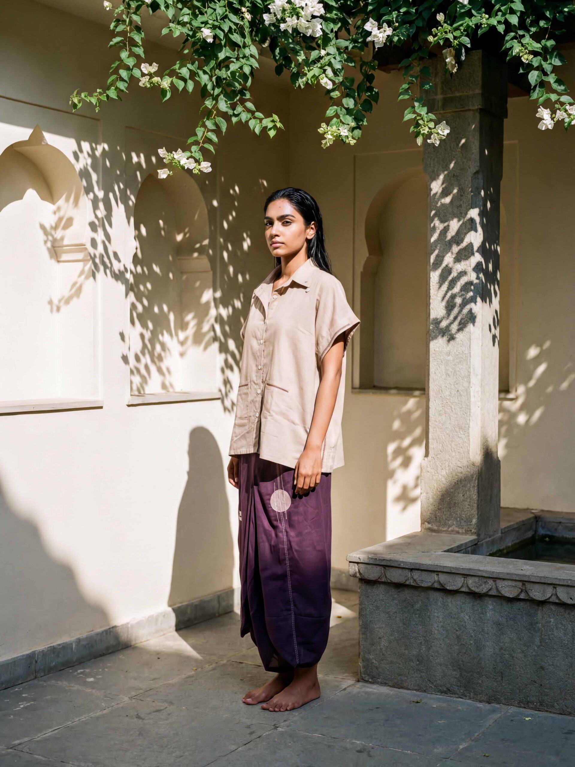 RUDRA TAUPE AND WINE BOX POCKET SHIRT WITH LANTERN PANT