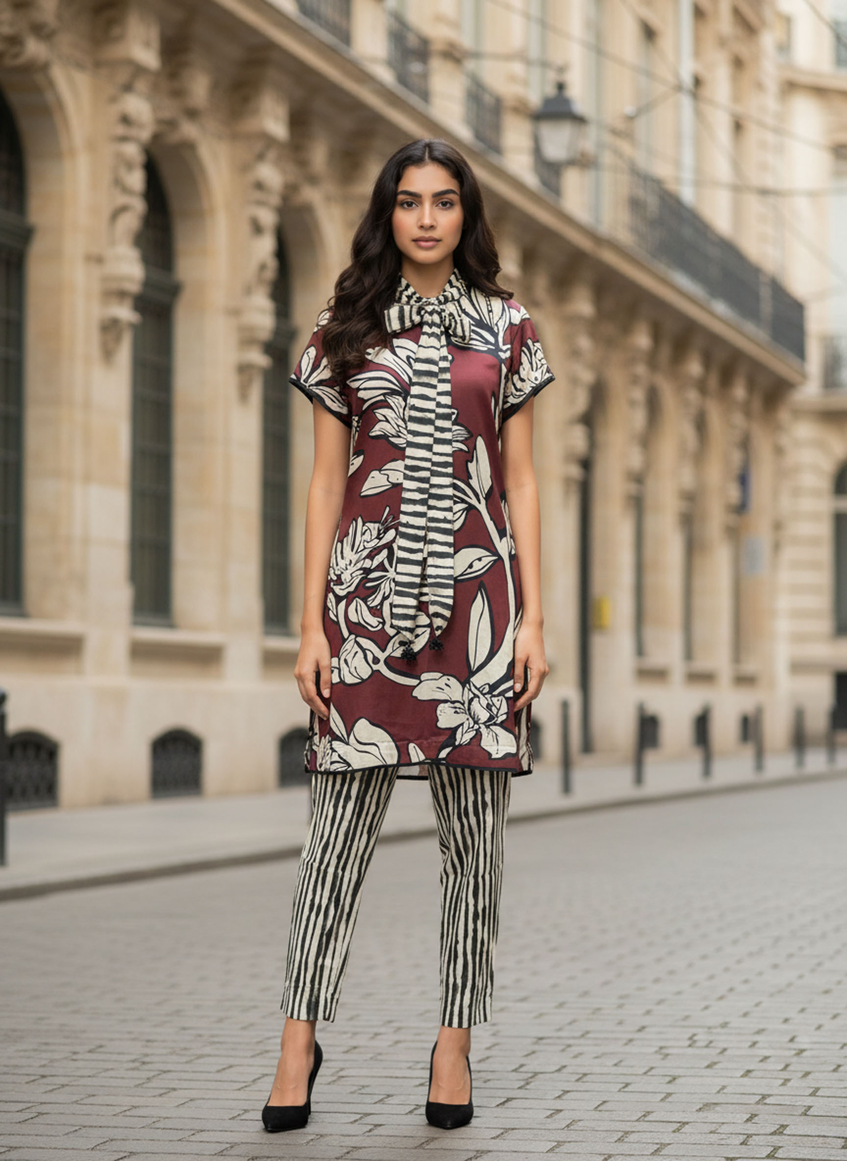 SANGRIA TIE UP NECK TUNIC SET